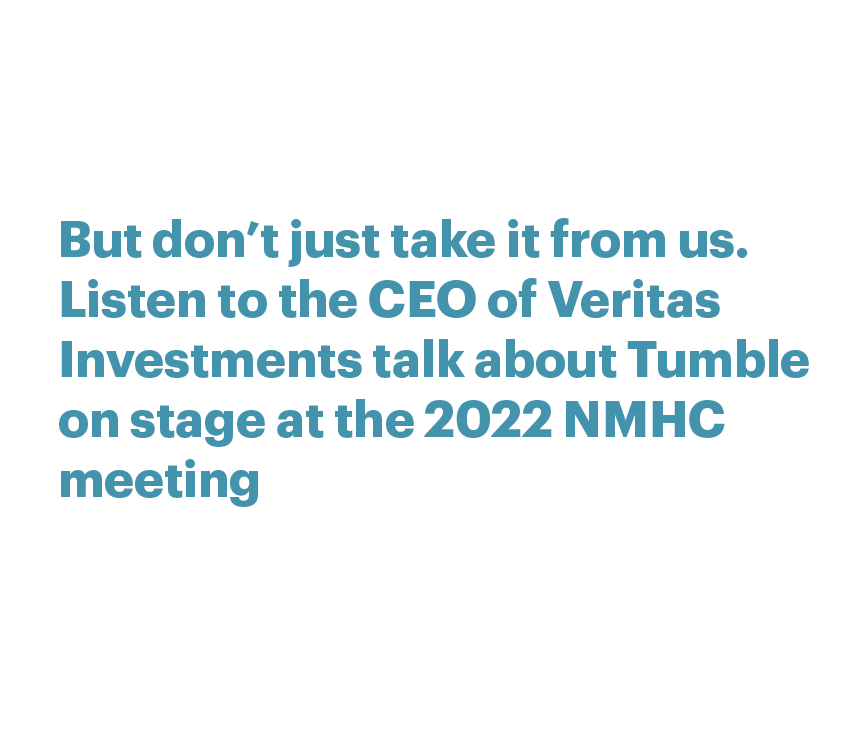 All machines utilize Tumble’s proprietary connected system with cashless payment. With signing of a 5 year or more term, Tumble will include it's upcoming resident insights platform included in this package and 2 Tumble Smart Centers.